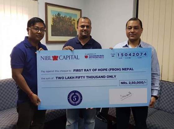 - NIBL Capital believes that investment in knowledge and education is one of the best assets one can invest in. Therefore, a donation of NPR 2.5 lakhs was made to the foundation- First Ray of Hope, with an intention to provide free educational sponsorship for two orphans till class 10.
